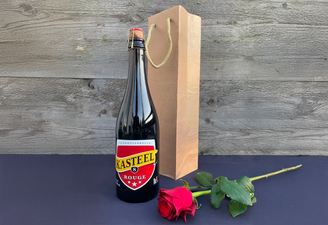 Une bouteille de bière Kasteel rouge (75cl), au goût fruité et gourmand.